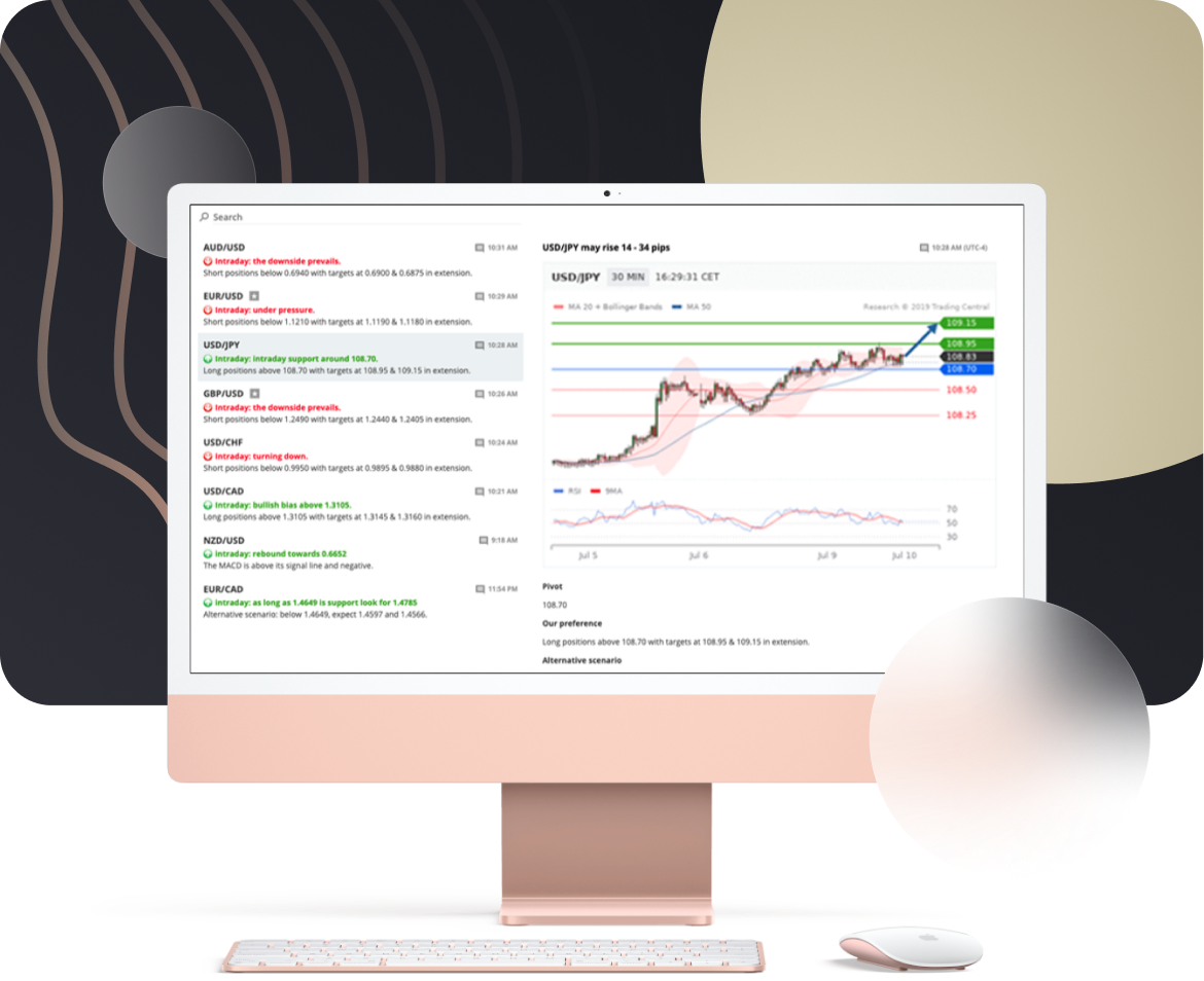 Make smarter investment decisions with superior market research and analysis from leading fintech organisations Trading Central and FXBlue. With an Recitycopy trading account, you can gain access to a suite of advanced technical tools and indicators for free, including TC Technical Views, TC Featured Ideas, and FXBlue’s Figaro app suite, Trade Mirror, Trade Copier, and much more.